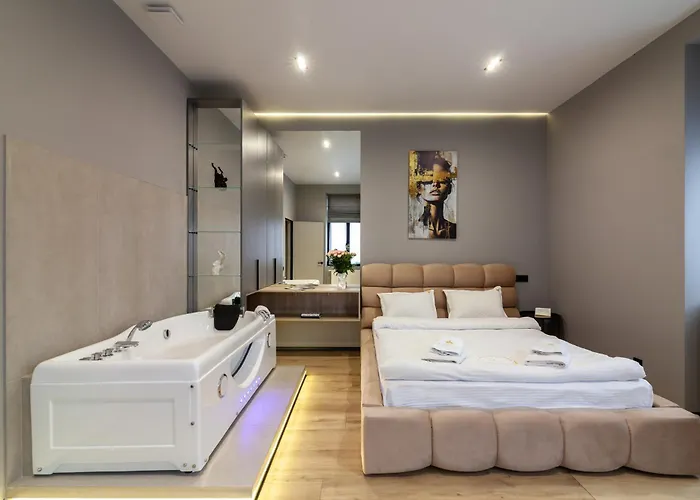 Royal Jacuzzi Apartment On Krehivska 10 St Lviv ligger i Lvivs centrum, cirka 17 minuter till fots från Latinska katedralen. Gästerna kan förbättra sin vistelse genom att njuta av hydromassagebadkar som finns på plats.